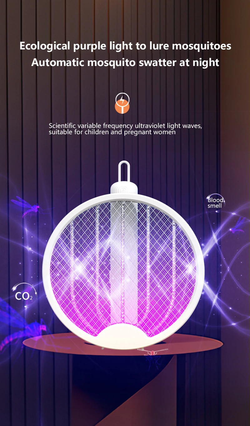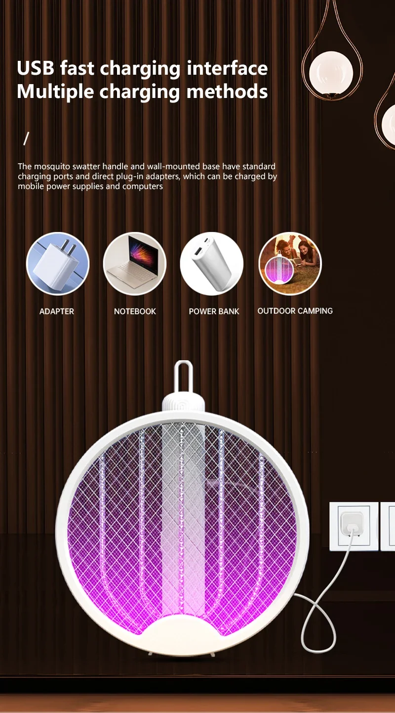 Dock the swatter into the stand, and it becomes a UV mosquito killer lamp — killing insects silently while you sleep.